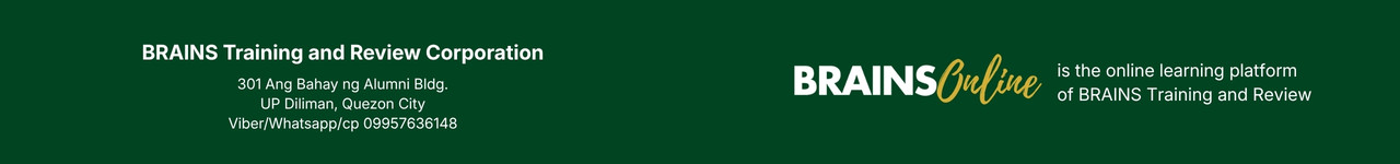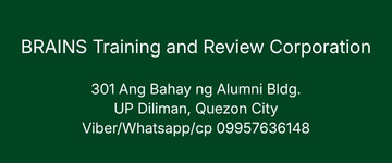 301 Ang Bahay ng Alumni, UP Diliman, Quezon City Phones (02) 83557408 (0995)-7636148 Email: info@brains.com.ph FB - https://www.facebook.com/brains.review